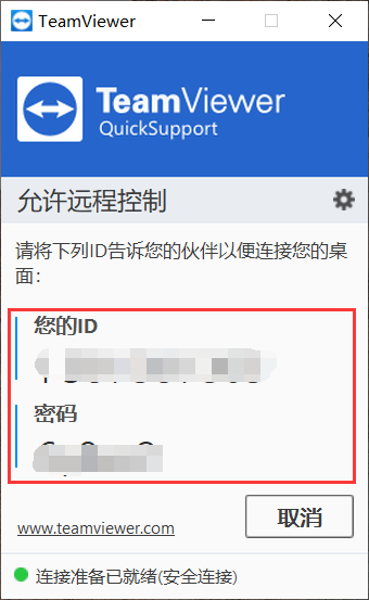 遠程時只需要告訴我們您的ID和密碼即可,如下圖所示:
