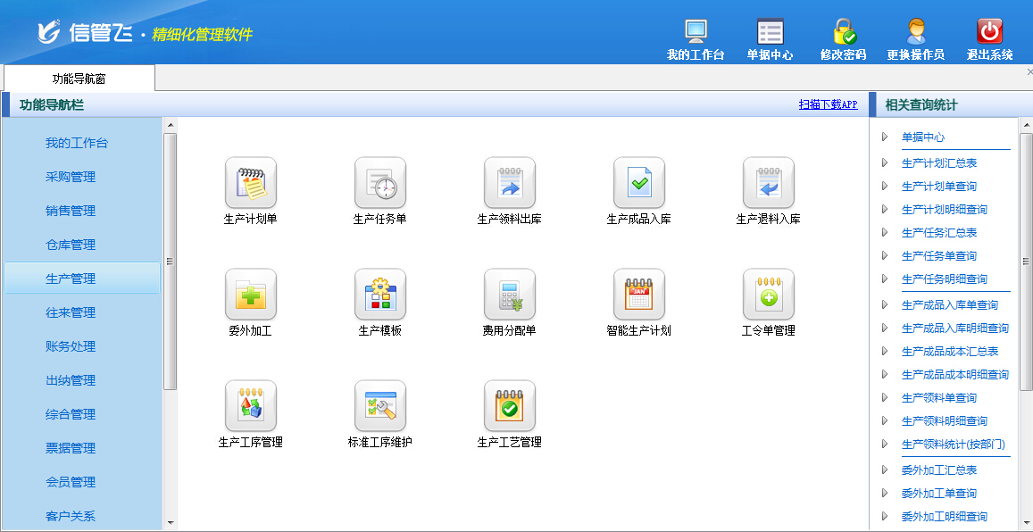 包括功能:生產(chǎn)模板、生產(chǎn)計(jì)劃單、生產(chǎn)任務(wù)單、生產(chǎn)領(lǐng)料出庫(kù)單、生產(chǎn)成品入庫(kù)單、生產(chǎn)退料入庫(kù)單及智能生產(chǎn)計(jì)劃等。