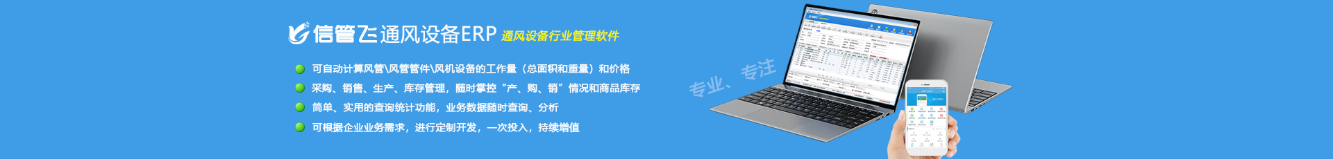 信管飛通風(fēng)設(shè)備ERP軟件是一款針對通風(fēng)設(shè)備行業(yè)開發(fā)的進(jìn)銷存ERP記賬軟件(風(fēng)管風(fēng)機(jī)銷售軟件、暖通ERP管理軟件、暖通業(yè)務(wù)管理系統(tǒng)、風(fēng)管設(shè)備報(bào)價(jià)軟件、風(fēng)管面積計(jì)算軟件),系統(tǒng)主要包括采購管理、銷售管理、庫存管理、往來賬管理、出納管理等業(yè)務(wù)管理功能,并支持財(cái)務(wù)管理、簡易生產(chǎn)加工管理、智能Excel導(dǎo)入等數(shù)十個擴(kuò)展功能模塊(需單獨(dú)付費(fèi))。本系統(tǒng)結(jié)合通風(fēng)設(shè)備行業(yè)特點(diǎn),實(shí)現(xiàn)可定制的數(shù)據(jù)計(jì)算模型,可自動計(jì)算風(fēng)管展開面積、生成銷售價(jià)等信息,支持風(fēng)管庫、風(fēng)機(jī)庫維護(hù)管理,以訂單為主線流程,串聯(lián)銷售出貨、生產(chǎn)加工、庫存管理,輕松實(shí)現(xiàn)通風(fēng)設(shè)備業(yè)務(wù)管理信息化!
