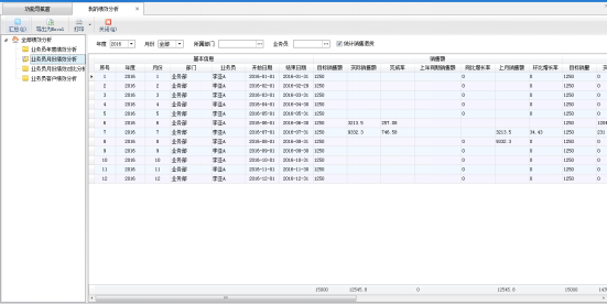 ????在功能導(dǎo)航窗點擊“擴展應(yīng)用”——“我的績效分析”,即可進入到我的績效分析界面,包含業(yè)務(wù)員年度績效分析、業(yè)務(wù)員月份績效分析、業(yè)務(wù)員月份績效對比分析、業(yè)務(wù)員客戶績效分析等,其界面如下圖所示。