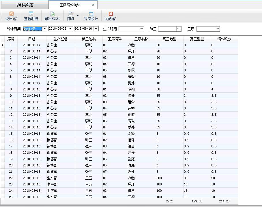 查看詳情:在工具欄點擊“查看詳情”按鈕可以查詢工序績效明細(xì)信息。