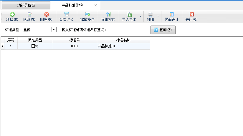 查看詳情:在工具欄點擊“查看詳情”按鈕可以查看已選擇產品標準的詳細信息。
