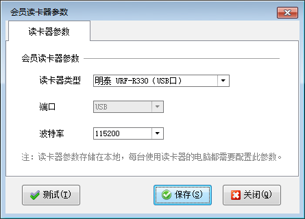 ????讀卡器類型支持“明泰 MFR-35(串口)”及“明泰 URF-R330(USB 口)”兩種。