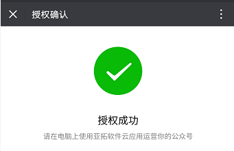 ????在手機微信上點擊“授權”后,會彈出一個授權成功界面。如下圖所示: