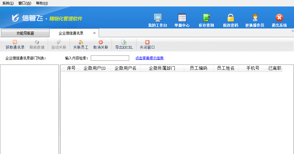 獲取通訊錄:點擊“獲取通訊錄”,可以獲取獲取企業微信后臺的微信通訊錄。