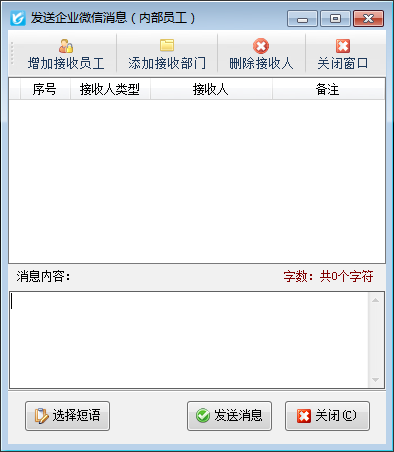 ????在功能導航窗點擊“擴展應用”—》“發送企微消息”可以打開發送企業微信消息窗口,可以編輯消息內容對企業內部員工發送微信企業消息,其界面如下圖所示。