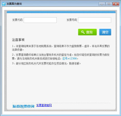????發票查詢支持發票的真偽查詢,可按指定的發票代碼及發票號碼查詢發票的真偽(此功能需要連接互聯網)。