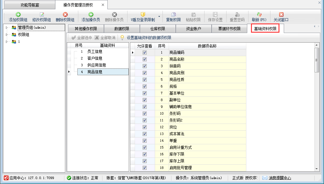 (4)啟用基礎(chǔ)資料數(shù)據(jù)項(xiàng)權(quán)限控制