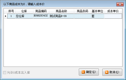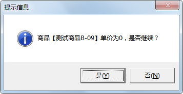 (1)采購入庫單保存時(shí)商品單價(jià)為 0 提示