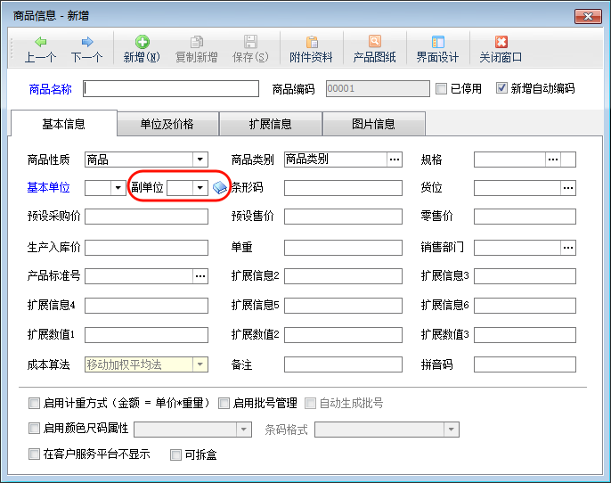 ????啟用商品副單位后,在商品信息中可以維護(hù)副單位,在業(yè)務(wù)單據(jù)明細(xì)中可以輸入副單位的數(shù)量。保存審核單據(jù)后,軟件會(huì)自動(dòng)計(jì)算倉庫中的副單位數(shù)量。