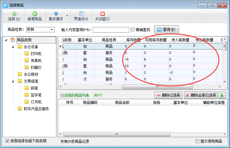 (6)在單據(jù)中點(diǎn)“添加明細(xì)”時(shí)彈出商品選擇窗口