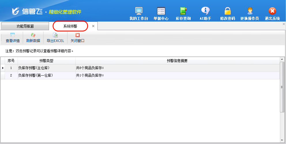 (2)負(fù)庫存提示