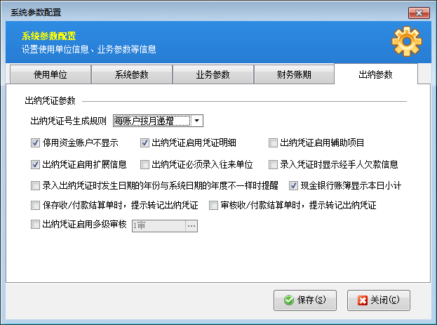 出納參數(shù):可設(shè)置出納憑證參數(shù)