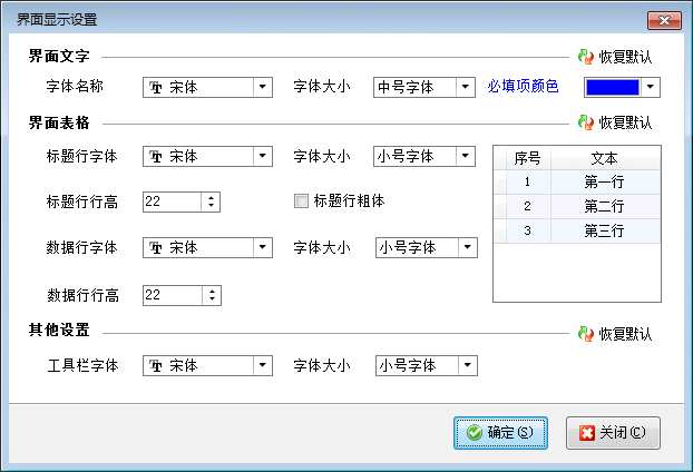 ????在功能導(dǎo)航窗點(diǎn)擊“系統(tǒng)管理”—》“界面顯示設(shè)置”可以打開界面顯示設(shè)置窗口,可以設(shè)置軟件界面文字、必填項(xiàng)、界面表格等顯示效果。