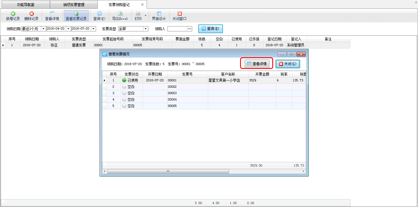 查看詳情:選中發票,點擊“查看詳情”按鈕,可以查看發票信息。