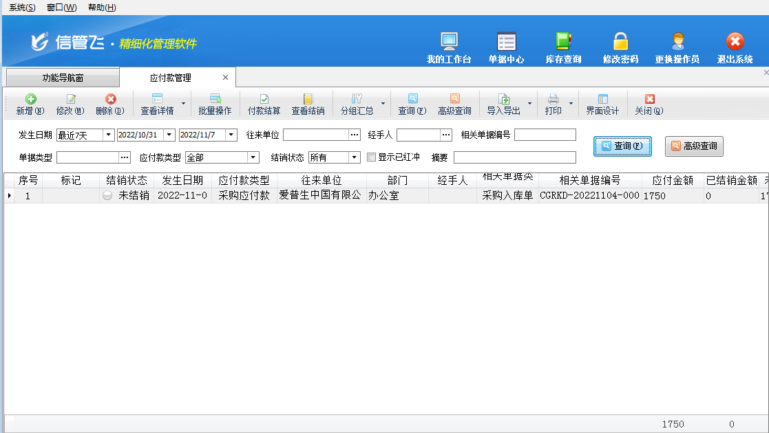 刪除應付款:可以刪除明細中的應付款記錄,這里的刪除只是本次不結銷,并不會實際刪除應付款記錄。