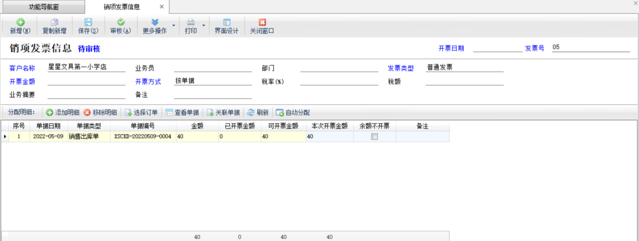 審核發票:選中發票,點擊“審核發票”按鈕,可以審核發票信息。