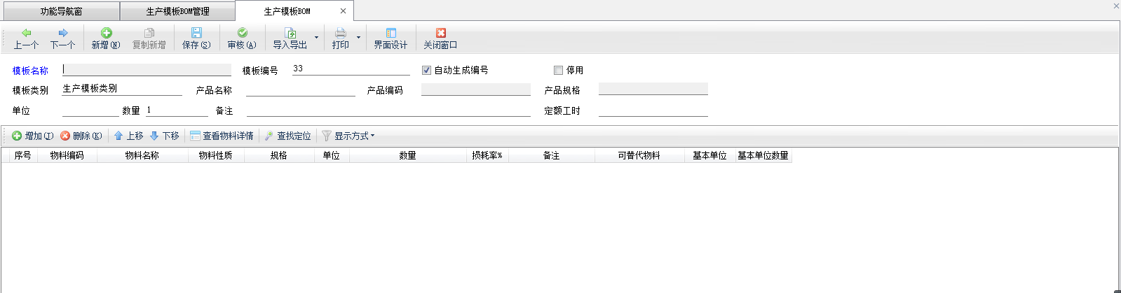修改模板:點(diǎn)工具欄中的“修改”按鈕,可以對(duì)生產(chǎn)模板信息進(jìn)行調(diào)整。