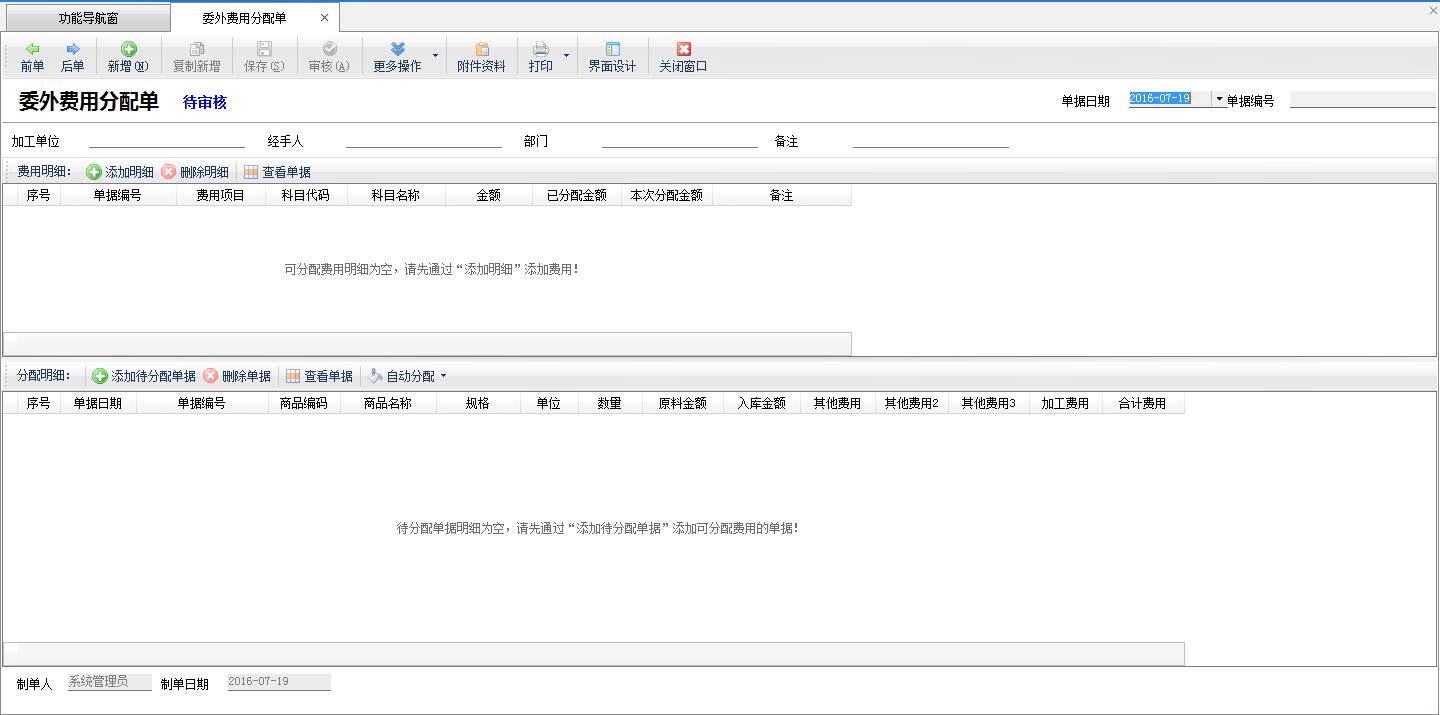 ????委外加工費用于管理委外加工過程中產生的各種費用,登記費用后可以將費用分攤到加工產品成本中,并自動生成應付款,支持與加工單位進行付款結銷(委外費用結算單)。