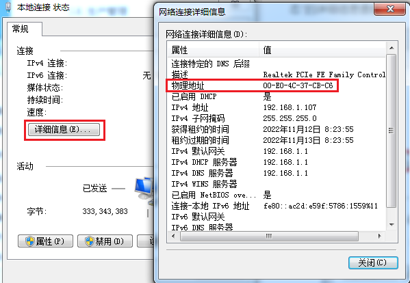 ????設置允許連接的客戶端網卡地址,每行一個網卡地址。客戶端的網卡地址可以在連接客戶端界面中點“復制客戶端網卡地址”進行復制,也可以在“網絡和共享中心”中 “本地連接狀態”的詳細信息查看到。