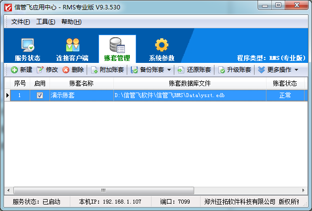 ????賬套管理實現賬套數據庫的集中管理,包括新建賬套、修改賬套屬性、刪除賬套、附加賬套、備份賬套、還原賬套和升級賬套功能。