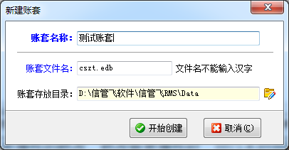 ????(1)新建:新建賬套時,可以設置賬套名稱、文件名以及賬套的存放路徑。賬套文件名不支持漢字,請輸入字母或數字,并盡量不要使用特殊符號。賬套存放目錄我們建議使用默認的目錄即程序所在目錄下的 Data 子目錄,方便后續管理和使用。