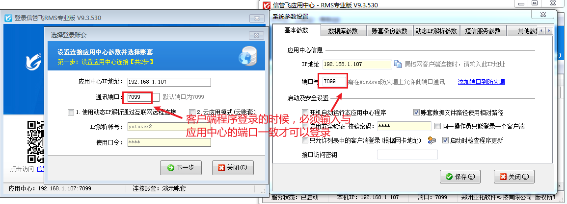 ????應用中心程序只需要在作為主機的電腦上安裝和運行,客戶端程序(即信管飛 RMS 等)連接應用中心,實現數據訪問和存取。因此,使用軟件前必須打開主機電腦,并運行應用中心程序,才可以登錄軟件。