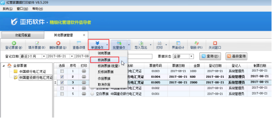 ????其他票據(jù)管理可以對(duì)其他票據(jù)進(jìn)行從登記—》領(lǐng)用—》填開—》核銷的流程化管理,只有已領(lǐng)用的票據(jù)才可以核銷。軟件支持批量核銷票據(jù),為客戶核銷票據(jù)節(jié)省時(shí)間,提高工作效率。本文以紅管家票據(jù)打印軟件為例介紹一下如何批量核銷其他票據(jù)。