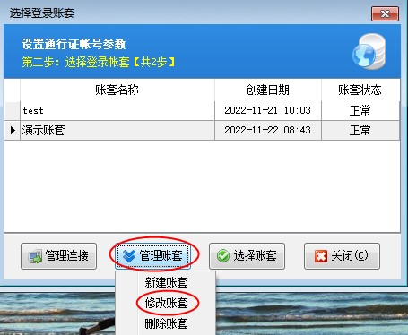 ????輸入通行證賬號(hào)和密碼后,點(diǎn)擊下一步會(huì)進(jìn)入選擇登錄賬套界面,新賬號(hào)登錄需要新增賬套,在“管理賬套”中點(diǎn)擊新建賬套,輸入賬套名稱(chēng)新建,完成后選擇賬套登錄軟件即可,如下圖所示: