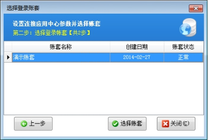 ????二、應用中心程序數據庫狀態為:連接成功,打開賬套管理界面,賬套列表沒有賬套。