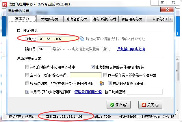 ????①應用中心IP地址即主機電腦的IP地址,可以在主機上的應用中心程序上查看(在狀態欄和系統參數設置中都可以看到),如下圖所示: