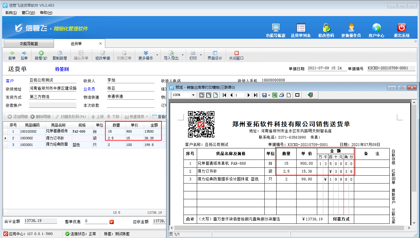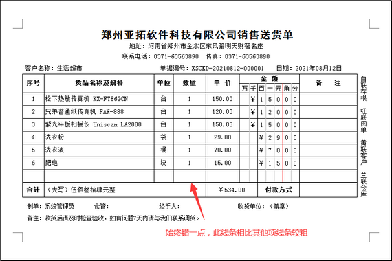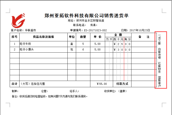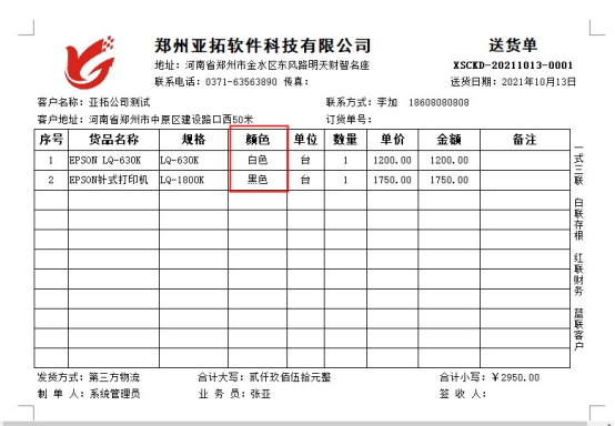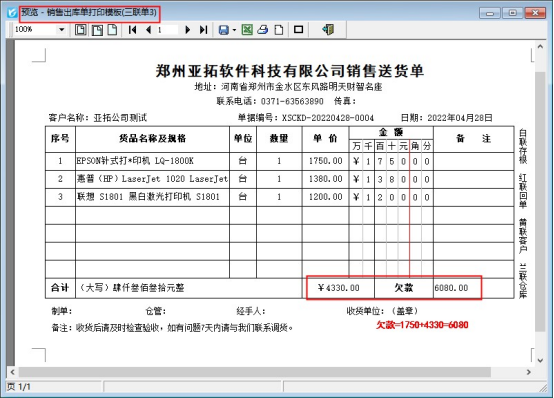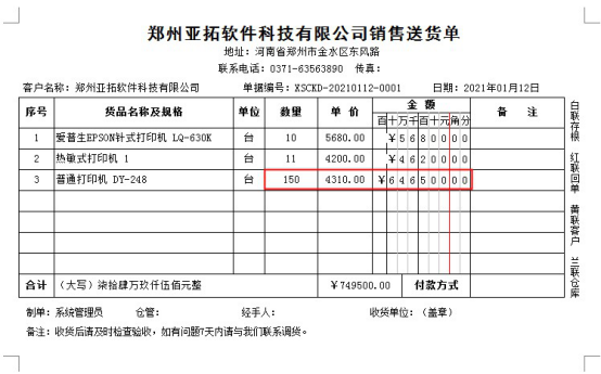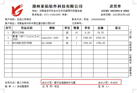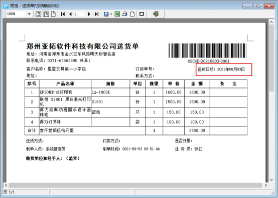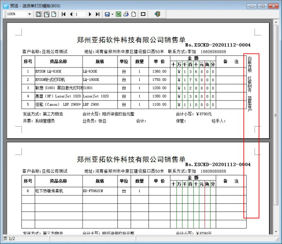 ????設置好之后,重新打印送貨單,即可正常打印,如下圖所示。