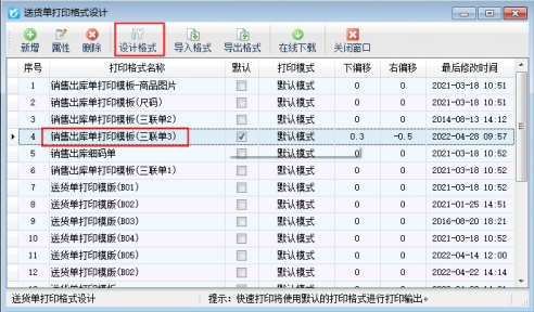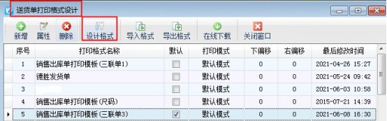 ????在開單界面點擊“打印”—》“打印格式設計”—》選擇打印模板點擊“設計格式”進入設計格式界面,有以下兩種情況:
