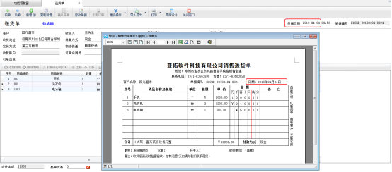 ????登錄軟件,開一個送貨單單據,打印預覽圖和單據界面如圖所示,模板界面日期顯示的是“2018年04月04日”,下面我們把日期格式修改為“2018-04-04”顯示。