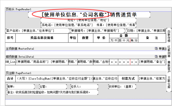 ????2.自定義打印模板,直接在打印模板中輸入的單位名稱。如下圖所示: