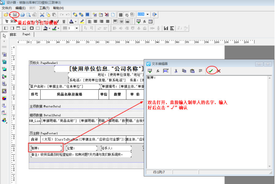 ????打印模板中的制單人,默認是當前登錄軟件的操作員,有的客戶需要打印模板統一為一個制單人,就需要在打印模板中固定制單人名字。