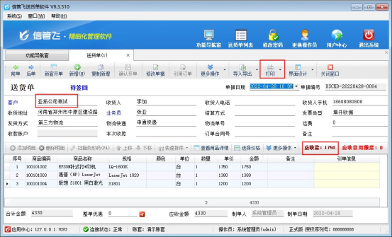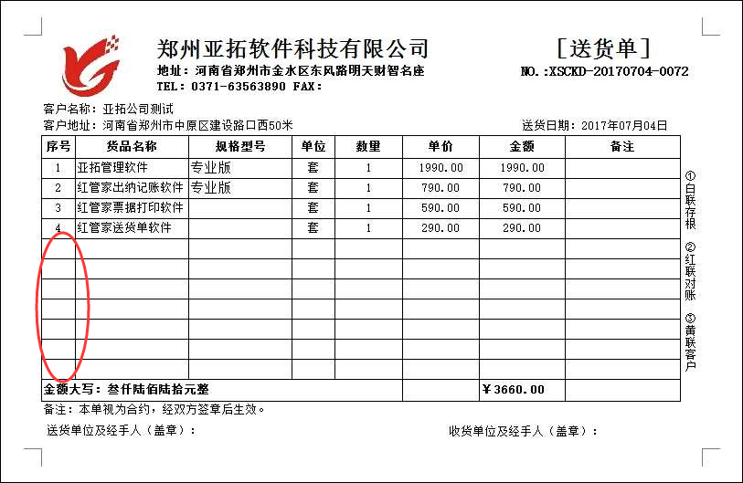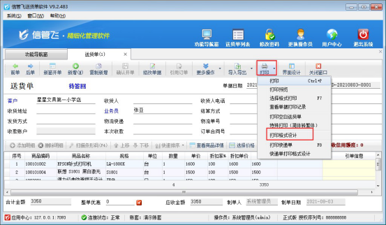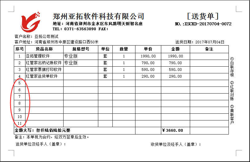 ????亞拓軟件旗下的信管飛送貨單軟件、信管飛RMS軟件、信管飛倉庫管理軟件,都支持開單打印單據,軟件中內置了十幾種打印模板供客戶選擇使用,也支持自定義設計打印模板,軟件內置打印模板設置自動增加空行,根據客戶需要模板不顯示空白行,我們以送貨單軟件為例設置下打印模板不顯示空白行。