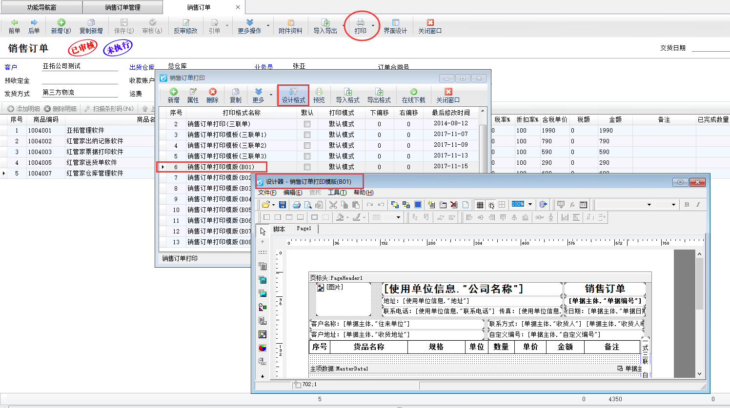 ????亞拓軟件旗下的信管飛送貨單軟件、RMS軟件、倉庫管理軟件等支持打印單據。軟件中有內置十幾種打印模板。內置打印模板的單位名稱自動調取系統管理中“系統參數配置”界面的使用單位信息。對于自定義設計的打印模板,有的客戶是直接在打印模板中輸入的單位名稱。所以需要修改使用單位之前可以先看下打印模板中的調用數據項。