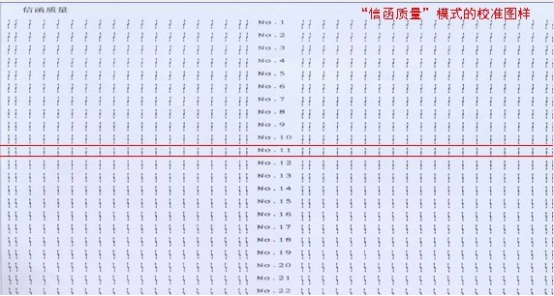 ????按打印機【設定】鍵,打印機會打印出“信函模式下的校準圖樣”,表示已進入“信函質量”校準模式,如下圖所示: