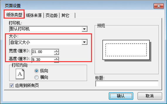 ????模板紙張大小可自定義設置,也可以選擇里面內置的格式,本文示例是選擇“自定義大小”,然后設置一下寬度和高度,點擊“確認”。如下圖所示: