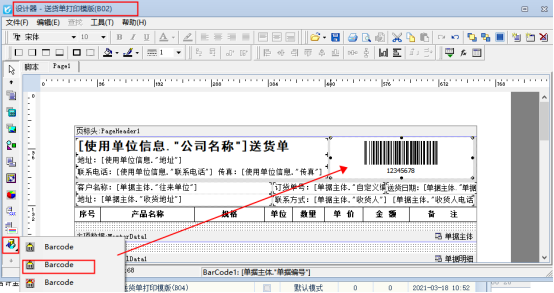 # 6.21.43 送貨單軟件打印模板如何添加條形碼打印?