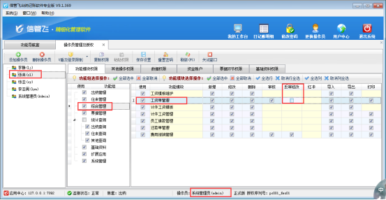????信管飛出納記賬軟件專業版,支持設置工資模板來管理員工工資單,為了避免操作員修改工資單,軟件中可以設置操作員的工資單不可反審修改權限。下邊我們在軟件中示范下如何設置操作員的此權限。