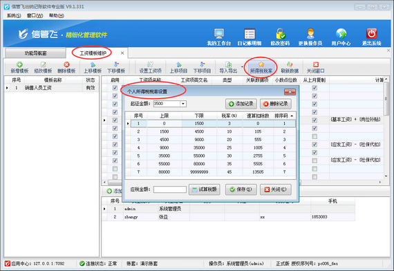 ????所得稅稅率:在工具欄點擊“所得稅稅率”可以打開“個人所得稅稅率設置”界面,可以對個人所得稅稅率進行設置。