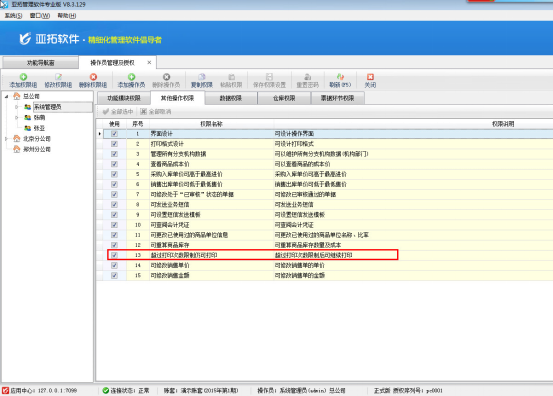 亞拓管理軟件(專業(yè)版、標(biāo)準(zhǔn)版、星光版)、紅管家倉庫管理軟件(專業(yè)版、標(biāo)準(zhǔn)版)都支持設(shè)置報(bào)表的打印次數(shù),以此來限制單據(jù)的打印次數(shù)。通過設(shè)置這個(gè)參數(shù),可以避免開單人員開單打印后又修改單據(jù),出現(xiàn)軟件中的單據(jù)內(nèi)容與打印出來的單據(jù)不一樣的情況。下面我們以亞拓管理軟件專業(yè)版為例演示一下具體的操作步驟。 在功能導(dǎo)航窗點(diǎn)“系統(tǒng)管理”—》“業(yè)務(wù)參數(shù)設(shè)置”即可進(jìn)入“業(yè)務(wù)參數(shù)設(shè)置”界面,如下圖1所示:圖1 在業(yè)務(wù)參數(shù)界面上我們將“報(bào)表打印超過指定次數(shù)提示”勾選上,并設(shè)置打印次數(shù),軟件中默認(rèn)的打印次數(shù)是1,你