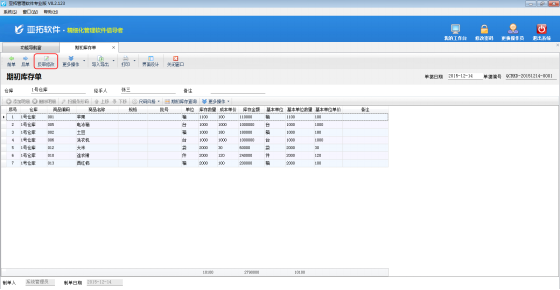 期初數據是指在軟件開賬日期之前的業務數據。期初庫存是軟件在開賬前需要先錄入好商品庫存信息。亞拓管理軟件星光版、標準版和專業版,亞拓倉庫管理軟件標準版和專業版都包括“期初庫存單”,“期初庫存單”可以錄入不同倉庫、不同商品的期初庫存數量和成本單價等信息,實現了軟件在開帳前對期初庫存的高效管理。對于“期初庫存單”的使用,我們以亞拓管理軟件為例做一下介紹: 登錄亞拓管理軟件,在功能導航窗,點“基礎資料”—》“期初建賬”,然后點“期初庫存錄入”,進入“期初庫存單”可錄入期初商品庫存(有期初庫存的倉庫和商品,需要提前在“基礎資料”錄