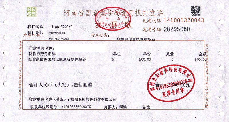 亞拓軟件2013年12月被遴選為“服務(wù)業(yè)營改增”試點單位,享受國家對軟件企業(yè)的稅收優(yōu)惠政策,目前首批試點單位只能開具“增值稅普通發(fā)票”,而不能開具“增值稅專用發(fā)票”。現(xiàn)將兩者的區(qū)別說明如下:(1)我司開具的增值稅普通發(fā)票不能用于抵扣 目前只有增值稅專用發(fā)票才可以作為一般納稅人的進(jìn)項稅的抵扣憑證(如果貴單位是小規(guī)模納稅人則就是增值稅專用發(fā)票也無法抵扣),當(dāng)然像購買農(nóng)產(chǎn)品的普通發(fā)票或經(jīng)認(rèn)證的貨運發(fā)票是可以抵扣的。 亞拓軟件開具的增值稅普通發(fā)票樣本如下(標(biāo)題為:河南省國家稅務(wù)局通用機(jī)打發(fā)票)