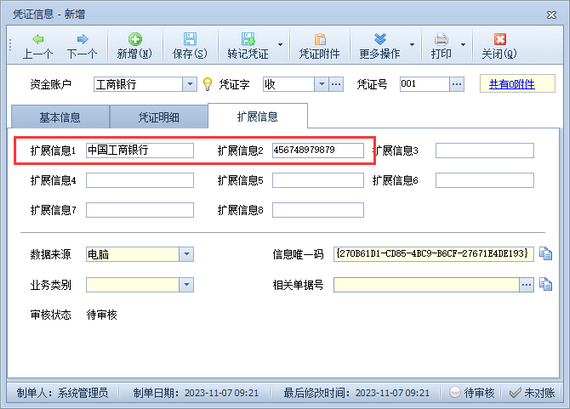 費(fèi)用報(bào)銷單一般是員工用自己的錢,在為公司工作過程中所墊付的,事情完成后,回公司報(bào)銷,軟件內(nèi)登錄費(fèi)用報(bào)銷單后怎么樣轉(zhuǎn)記到流水賬呢?本文介紹下費(fèi)用報(bào)銷單如何轉(zhuǎn)記出納憑證? 此文章相關(guān)演示視頻:費(fèi)用報(bào)銷單如何轉(zhuǎn)記出納憑證? 在功能導(dǎo)航窗點(diǎn)擊“綜合管理”—》“費(fèi)用報(bào)銷管理”打開費(fèi)用報(bào)銷管理界面,新增錄入報(bào)銷單之后點(diǎn)擊保存按鈕,如圖所示: 在新增報(bào)銷單界面點(diǎn)擊轉(zhuǎn)記憑證安裝,報(bào)銷單可轉(zhuǎn)記到銀行或者現(xiàn)金憑證,如圖所示