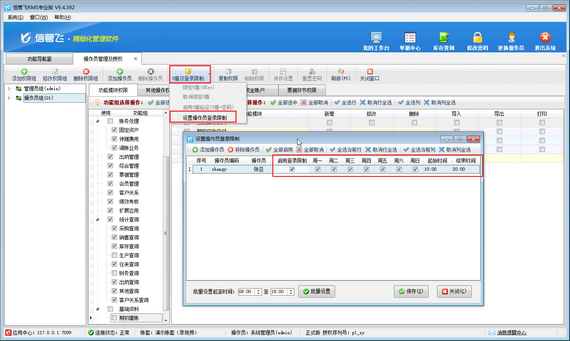演示視頻觀看鏈接:當(dāng)前操作員處于限制登錄時間,無法登錄系統(tǒng),如何解決演示視頻 部分信管飛軟件用戶在登錄軟件時會出現(xiàn)軟件登錄不成功的情況,如下圖所示,系統(tǒng)彈出提示信息:當(dāng)前操作員處于限制登錄時間,無法登錄系統(tǒng)! 信管飛系列軟件支持自定義設(shè)置操作員登錄軟件的時間,設(shè)置后,操作員在受限制時間內(nèi)則無法登錄軟件。出現(xiàn)以上問題的原因是,操作員在受限時間內(nèi)登錄的軟件。 解決方法: 一、當(dāng)前操作員在系統(tǒng)設(shè)置的可登錄時間內(nèi)登錄軟件,即