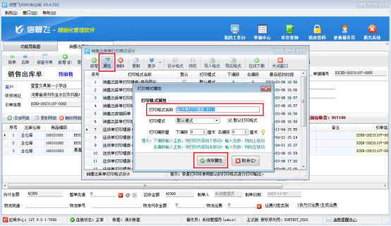 此文章相關(guān)演示視頻:如何修改打印模板名稱 信管飛軟件軟件中內(nèi)置了十幾種打印模板供客戶選擇使用,支持自定義設(shè)計(jì)打印模板,也支持在已有模板基礎(chǔ)上復(fù)制一份進(jìn)行調(diào)整打印模板樣式,復(fù)制打印模板時,打印模板名稱也會跟著復(fù)制過去,本篇文章介紹如何修改打印模板名稱? 在單據(jù)開單界面點(diǎn)擊“打印”------“打印格式設(shè)計(jì)”,進(jìn)入打印格式設(shè)計(jì)界面,如圖所示: 在打印格式設(shè)計(jì)界面,選中所需要修改名稱的打印模板,點(diǎn)擊“屬性”,
