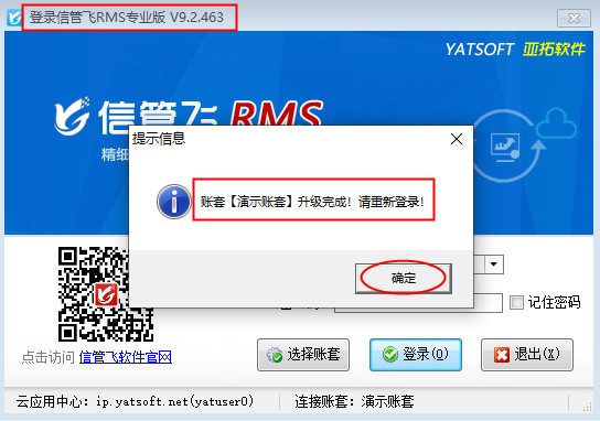 為了方便用戶隨時隨地使用軟件,亞拓軟件推出云賬套模式。云模式是亞拓軟件推出的一種在線應用模式,軟件數據存儲在云端,可以隨時隨地使用軟件,信管飛所有軟件都支持云賬套模式。 有些用戶登錄云賬套時,系統(tǒng)提示“客戶端與云應用中心要求的版本號不一致,請升級更新后再登錄!”如下圖1所示,登錄時之所以會提示升級版本,是因為亞拓軟件自主研發(fā)的軟件是不斷升級優(yōu)化的,發(fā)布新版本后,云賬套模式的客戶端需要和云應用中心的版本一致才可以登錄,下面我們以信管飛RMS專業(yè)版為例,介紹下如何升級到最新版本軟件?圖1